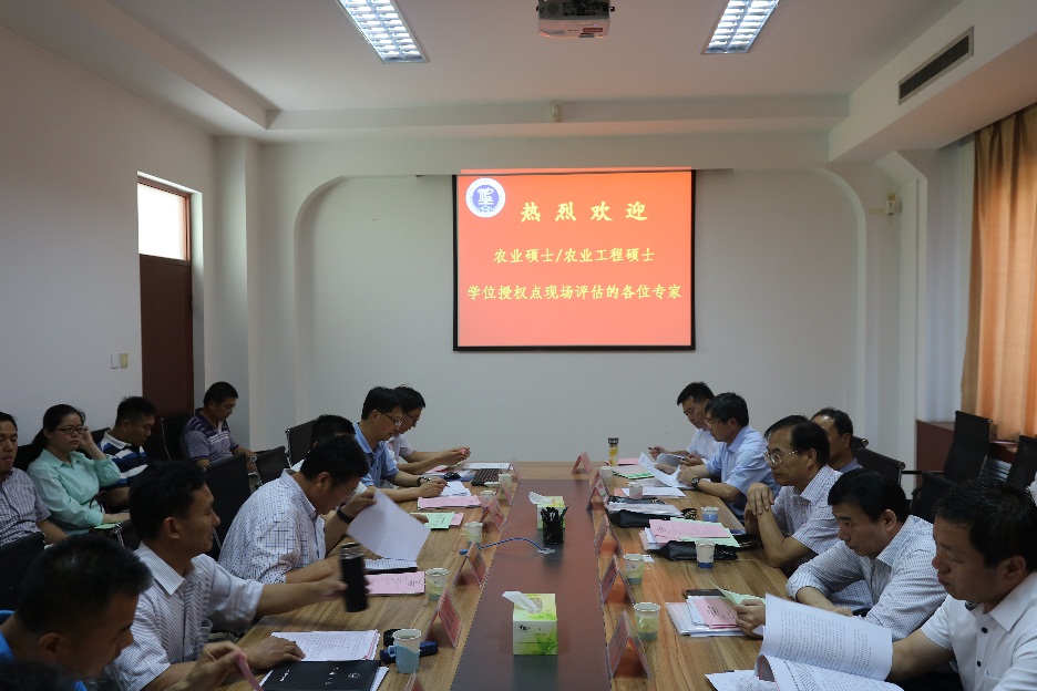汇报会议阶段由农工学院执行院长刘元义主持,易维明副校长致欢迎词。在简短的介绍与欢迎过后,张国海汇报农业硕士学位授权点情况,主要就培养目标定位、师资队伍、科学研究、培养条件、研究生奖助体系、人才培养等七个部分做汇报。随后柳善建汇报农业工程硕士学位授权点情况,主要就学位授权点基本情况、学位授权点目标与标准、学位授权点基本条件、学位授权点人才培养、特色及优势、存在问题及改进计划六个方面做汇报。专家组组长毛怀志首先对我校在结合社会需要、方案的设计合理性、教师工作质量等作出肯定,并且希望通过此次交流改善不足之处。随后各位专家分别就优秀生源两年毕业问题、实习工作安排的合理性与针对性、如何评价学位的授予标准问题和生源问题、实践教学学分占比与考核机制及实习期间考核机制、专业学位课程体系设计、农业管理专业问题、文件合理规划写作问题做出提问与建议,执行院长刘元义及各学科带头人分别就相关问题做出回答以及对专家意见认真听取。